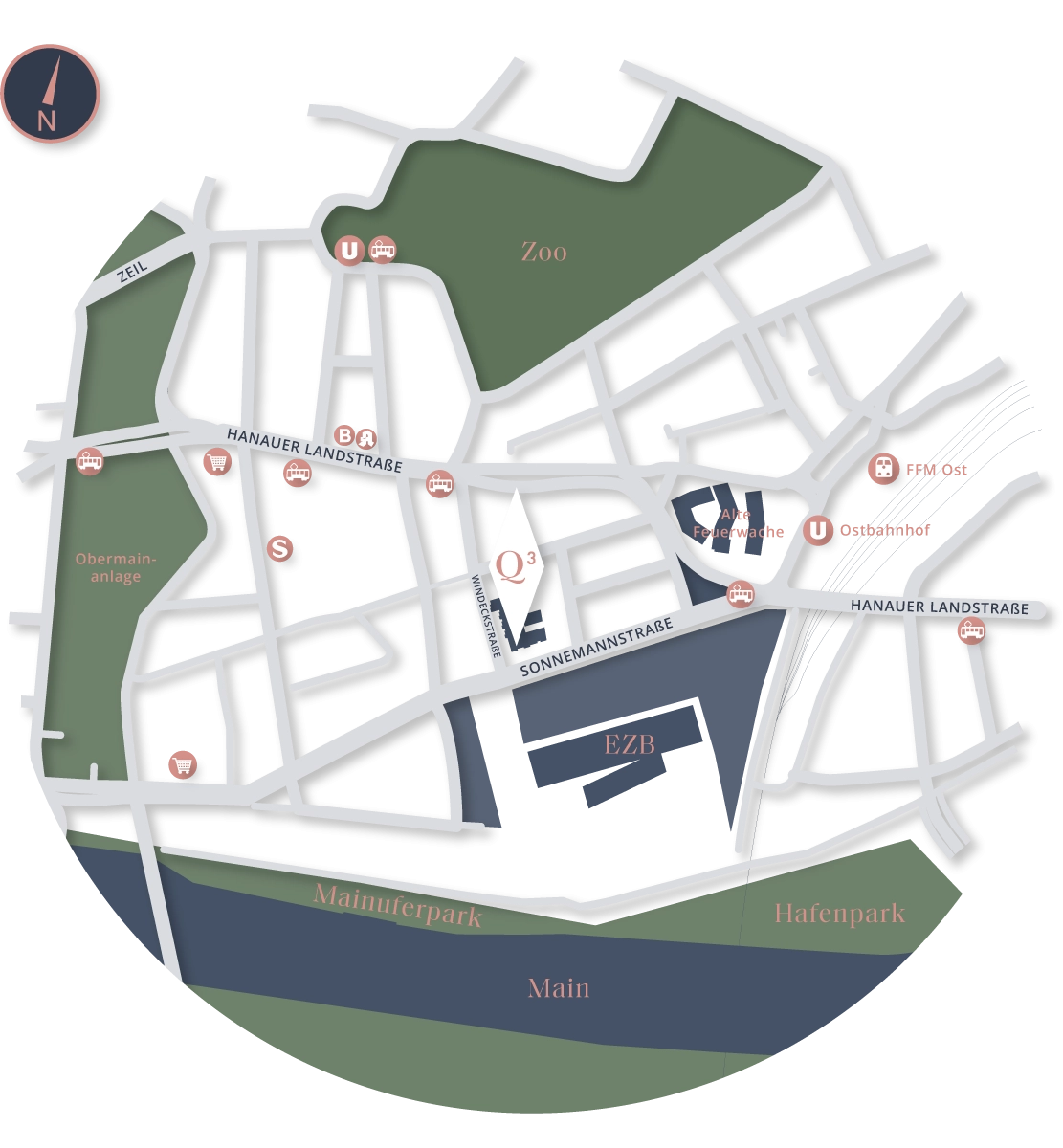 Im Rahmen des dritten Bauabschnitts des Projektes "Quartier East" im Frankfurter Ostend präsentiert sich mit "Q3" ein beeindruckendes Architekturensemble, das die Historie der Region gekonnt mit zeitgemäßem Wohnkomfort verbindet.
